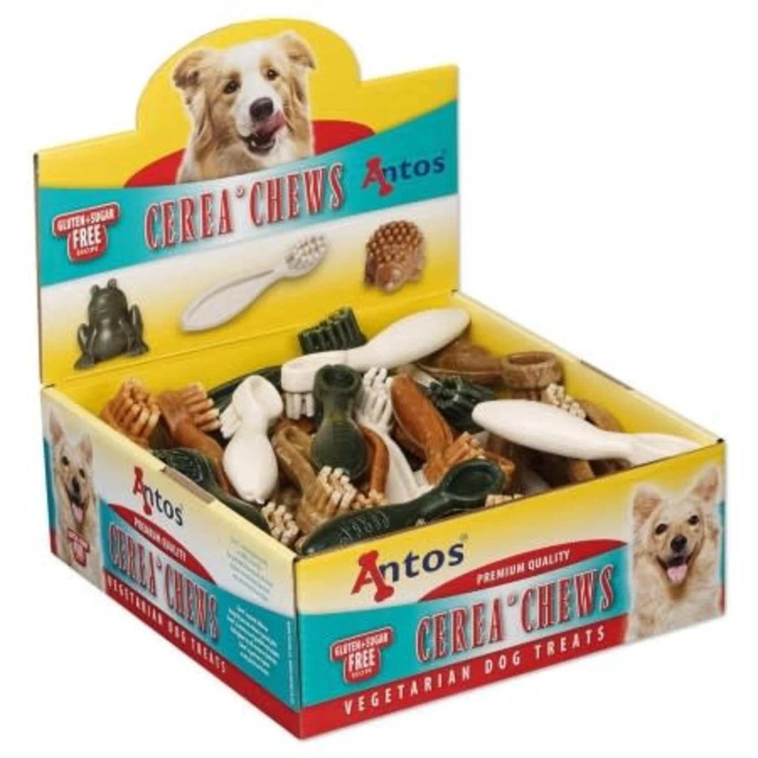 Cerea is een 100% natuurlijke en plantaardige snack voor honden. Door het hoge vezelgehalte stimuleert het de spijsvertering. Door het kauwen vermindert deze snack tandplak en voorkomt opnieuw aanhechting van plak. Cerea zorgt voor een frisse adem en een sterk gebit.