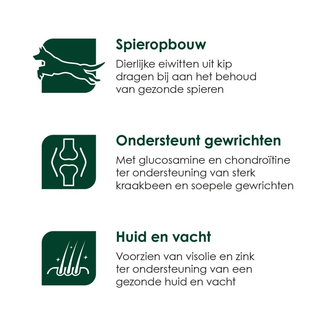 | Spieropbouw Dierlijke eiwitten uit kip dragen bij aan het behoud van gezonde spieren.  |