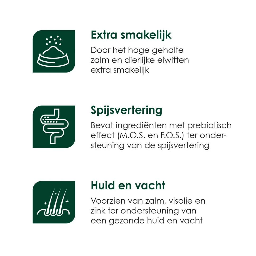 Glutenvrije, complete droge hondenvoeding voor volwassen honden van alle rassen. Extra smakelijk door toevoeging van zalm.
