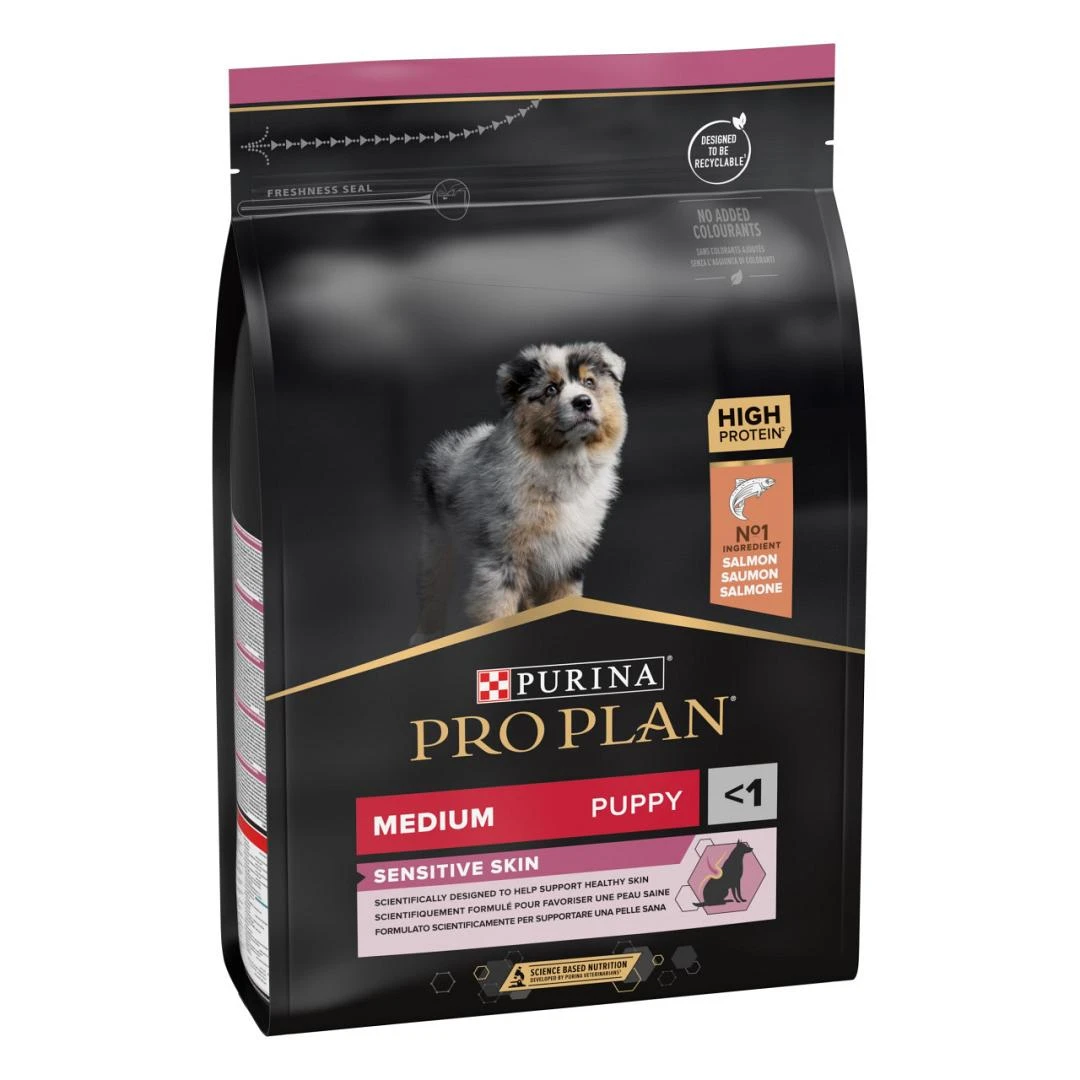 Pro Plan hondenvoer Medium Puppy Sensitive Skin met Optiderma bevat alle voedingsstoffen die je hond nodig heeft om in zijn behoefte te voorzien. Het is ook geschikt voor drachtige of zogende teven.