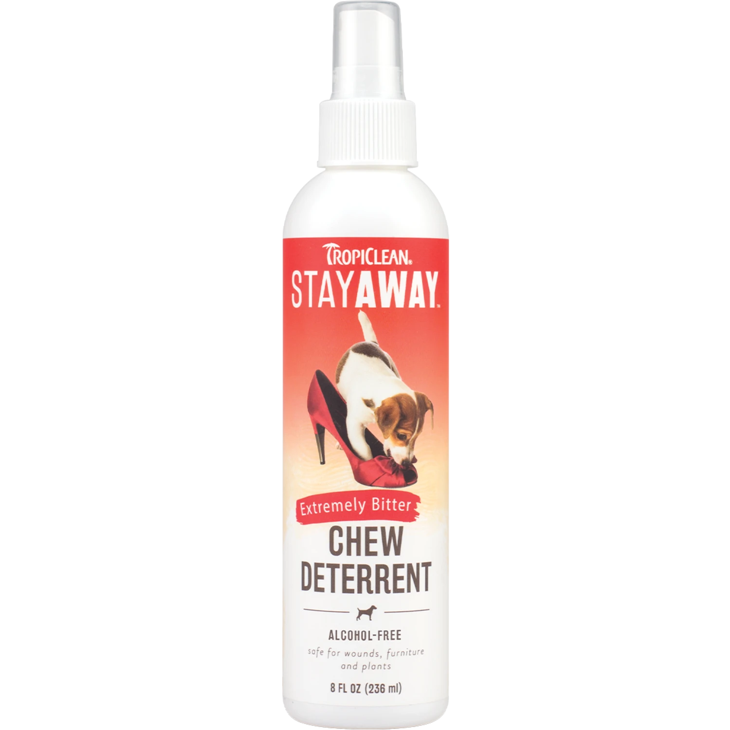 Hoe bitter zeg je? – tropiclean stay away is geformuleerd met enkele van de meest bittere extracten ter wereld. Tropiclean stay away smaakt zo bitter dat het dieren ontmoedigt om ooit te willen kauwen, bijten, likken of knagen aan iets dat ermee bedekt is.